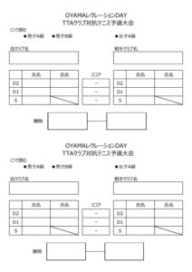 OYAMAレクリエーションDAY第16回TTAクラブ対抗テニス予選大会